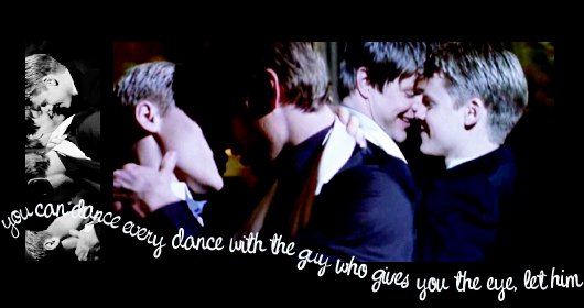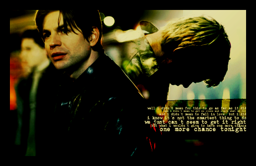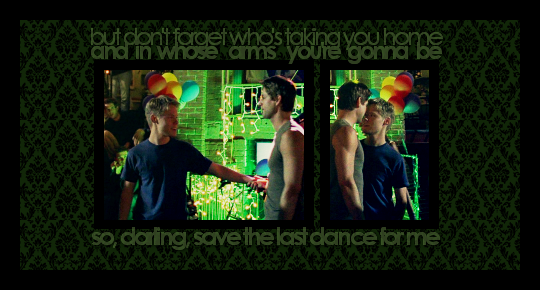 For the text on the graphics, I either used lyrics from a song/band I found you liked from poking around in your journal, or I used something that I hoped wouldn't be too offensive (such as "Save the Last Dance For Me" for Brian/Justin, or "Momentary Thing" for Veronica/Logan).